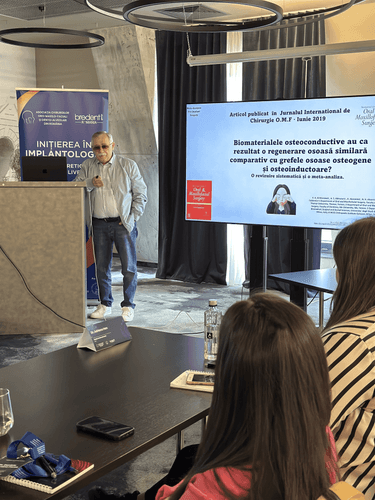 Cursul „Inițierea în Implantologie”, coordonat de Prof. Univ. Dr. Alexandru Bucur, este exact acest punct de pornire. De peste 15 ani, această experiență intensivă le oferă medicilor tineri șansa de a învăța implantologia pas cu pas — de la principii teoretice la intervenții reale, realizate chiar de ei, pe propriii pacienți, sub îndrumarea unei echipe de elită din România și Italia.