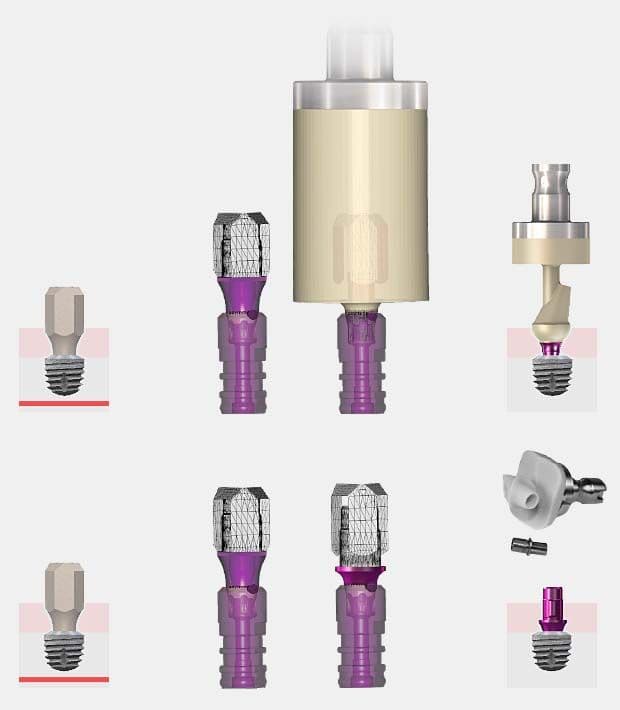 Amprentarea implanturilor inserate cu divergențe mari este facilitată de compensarea unghiulară de până la 35°, direct la nivelul implantului.